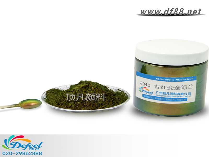 8340 古紅變金綠藍(lán)變色龍粉可應(yīng)用于涂料、油墨、塑料各產(chǎn)業(yè),產(chǎn)品之設(shè)計(jì)大多以室內(nèi)(無紫外光之環(huán)境)與室外(有紫外光之環(huán)境)有顏色變化為訴求。